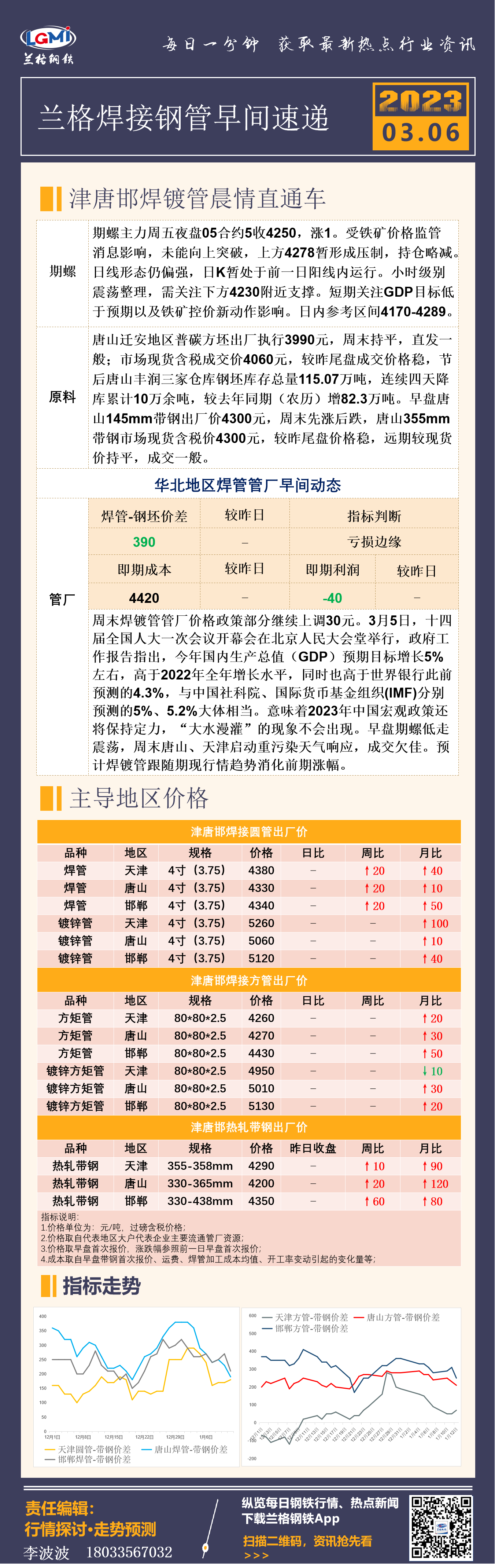 3月6日(9:20)兰格津唐邯焊接钢管早间速递
