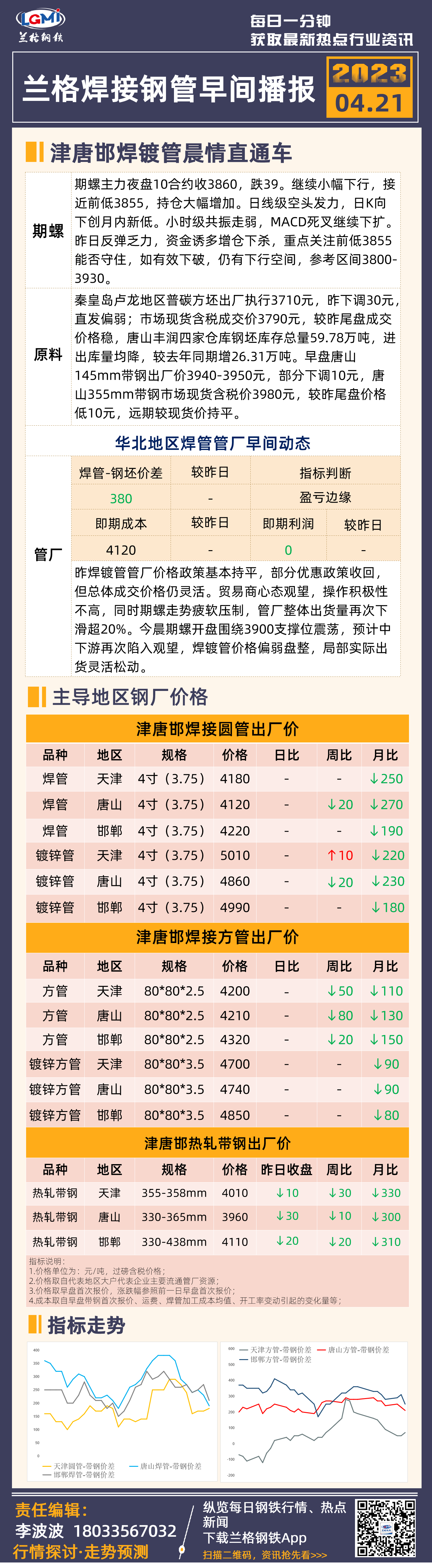 4月21日(9:20)兰格津唐邯焊接钢管早间速递