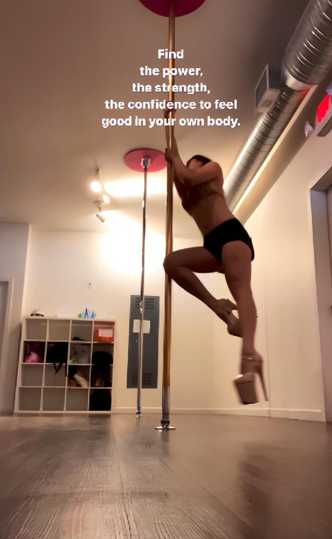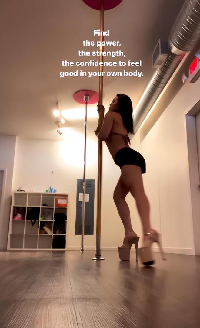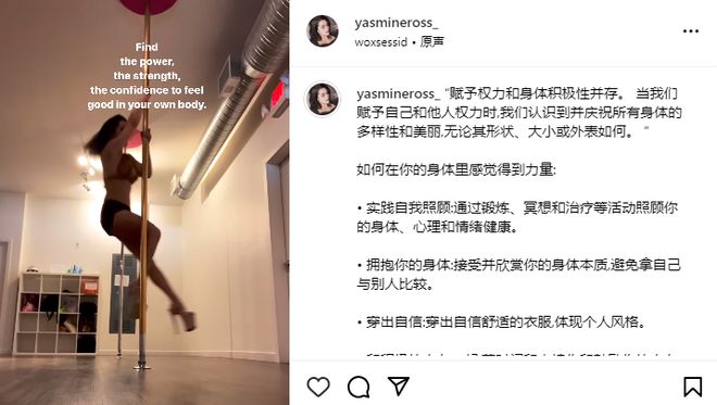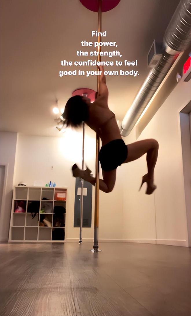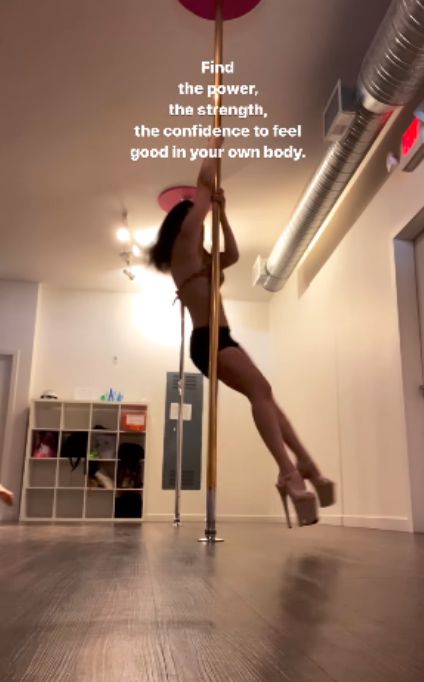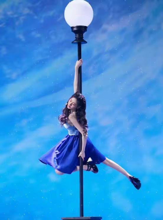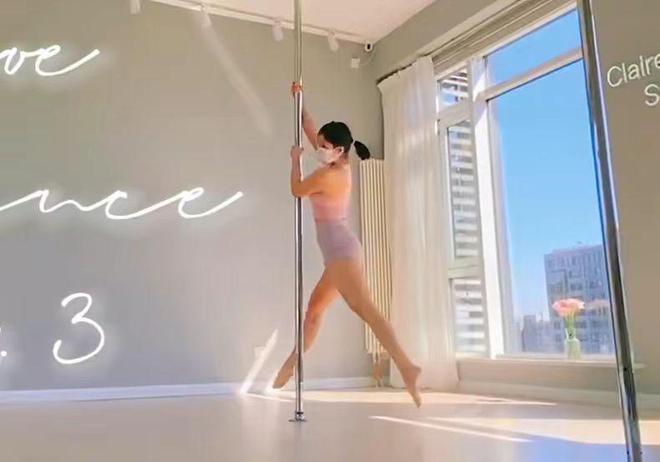 镜头里,她在钢管上尽情地展示自己姣好的身姿。只见她双手抓着钢管,双腿腾空,在空中不断旋转,一会儿做出迈步前行的动作,一会儿又用一只脚勾住钢管,仰着头摆出美丽的“飞天”姿势。