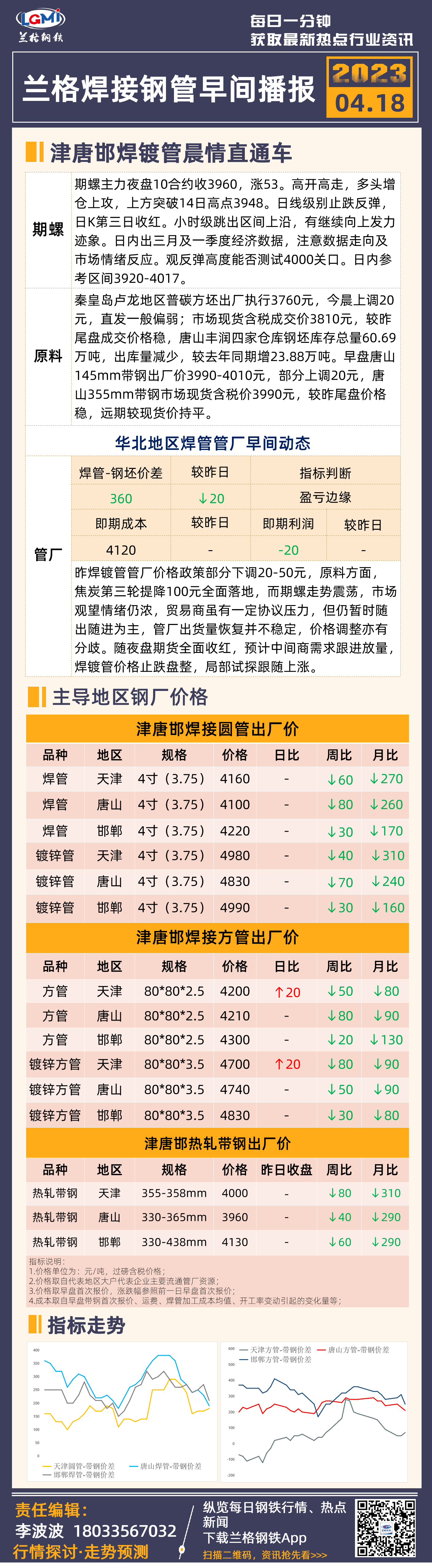 4月18日(9:20)兰格津唐邯焊接钢管早间速递
