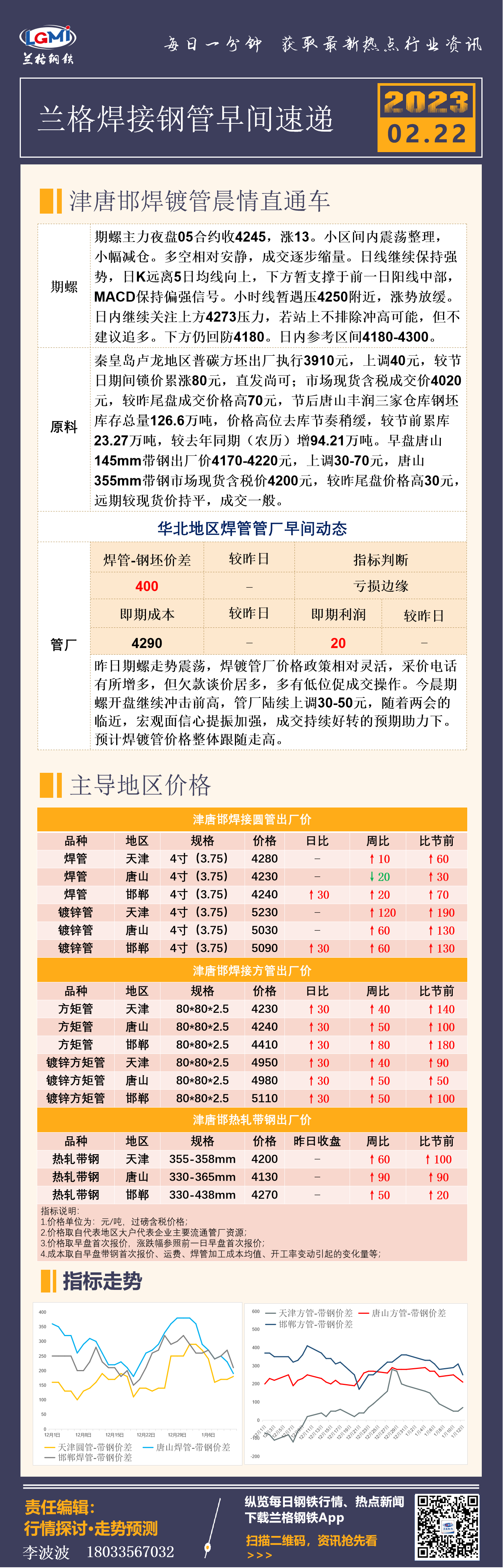 2月22日(9:20)兰格津唐邯焊接钢管早间速递