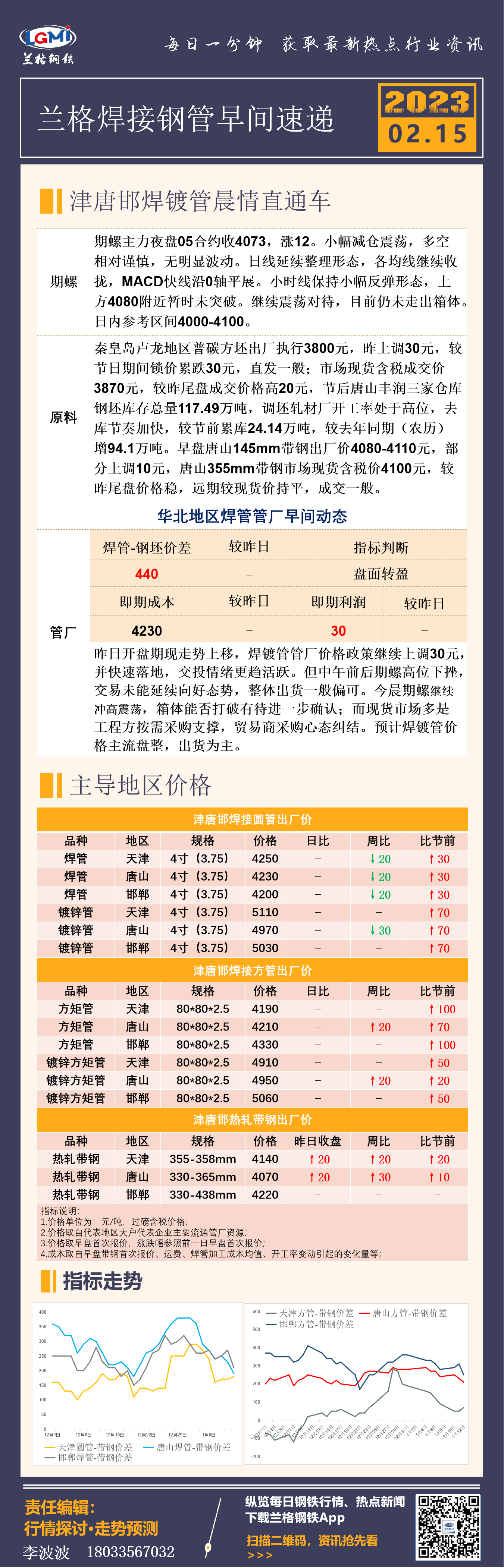 2月16日(9:20)兰格津唐邯焊接钢管早间速递