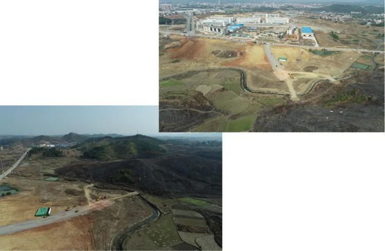 2022年2月18日开工建设,建设用地包含11座山头、8个鱼塘等。