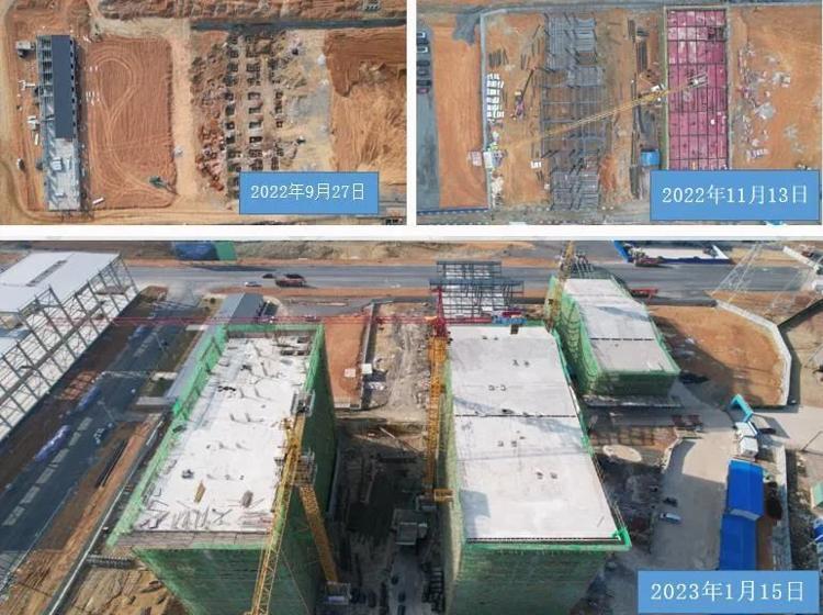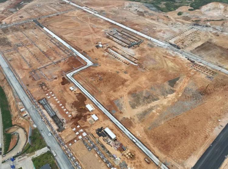 2022年4月20日动工,全面展开场地整平工作,施工现场1000余名工人、300余台机械24小时夜以继日不间断施工。5月,时逢南方雨季,抢工抢建。