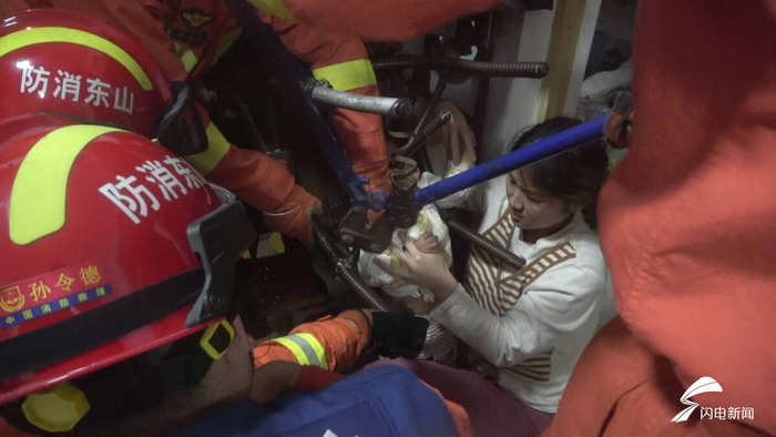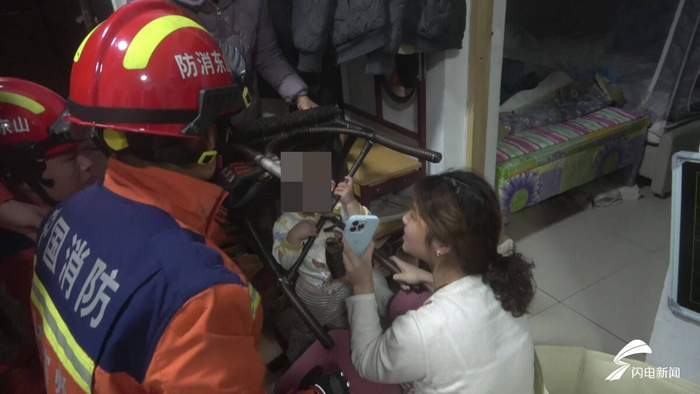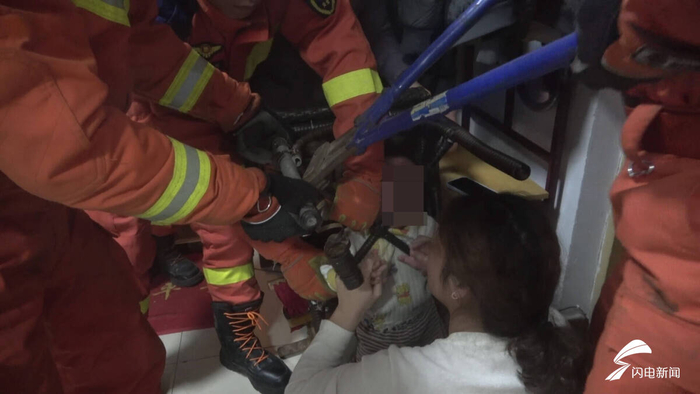 齐鲁网·闪电新闻12月21日讯 12月20日19时03分,滨州邹平市开发区一小区内,一名一岁幼童身体被卡在椅子空隙中,急需救援。